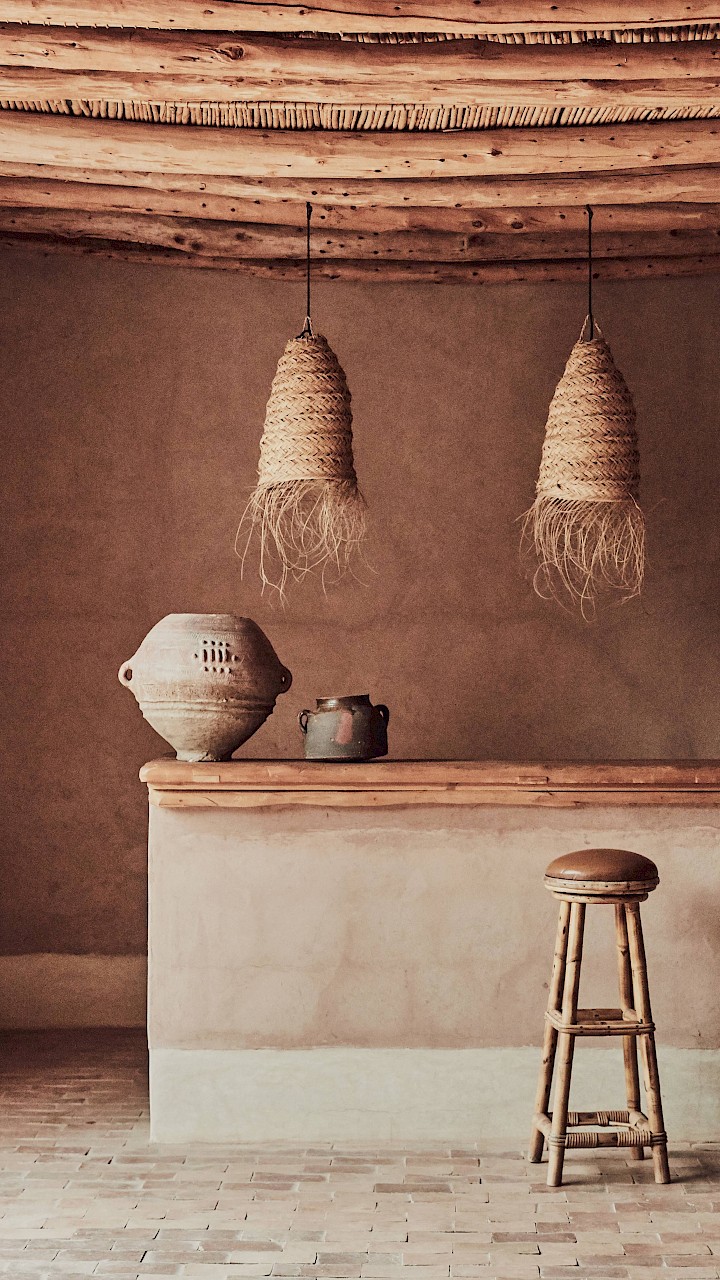 Un établissement de plus de 3000 m², des plafonds s’élevant jusqu’à 10 mètres de hauteur, des mosaïques et des sculptures imaginées par Serge Lutens lui-même et créé par les meilleurs artisans du Maroc … Située en plein centre-ville, les portes étouffent la frénésie extérieure pour préserver la discrétion et la magnificence d’un lieu qui intimide et fascine. L’incroyable demeure est plus un musée qu’une maison, un sanctuaire inhabité resplendissant et mystérieux, un hommage au beau avec un grand B.