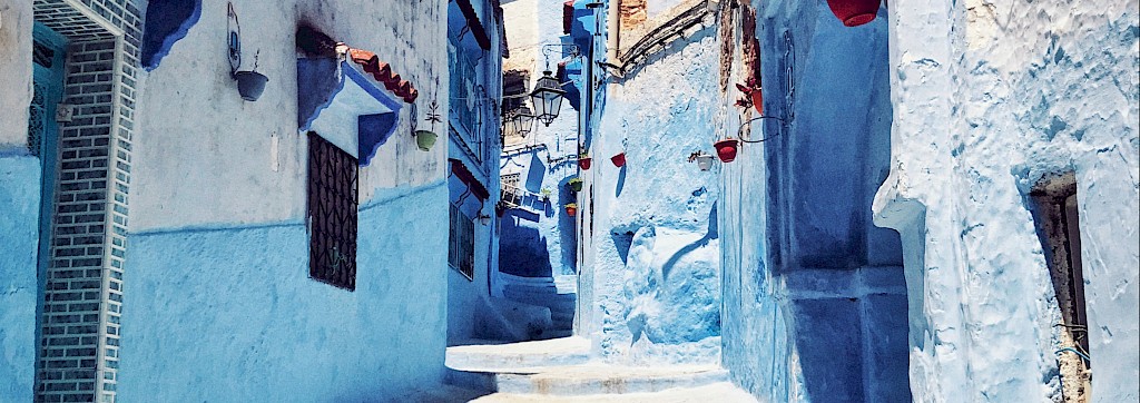 Vous visiterez dans la belle Chefchaouen l’ancienne médina à l’influence andalouse, où les toits de tuiles rouges contrastent avec les murs bleus. En vous perdant parmi les petites ruelles, vous déboucherez sur la place Uta-El-Hammam, et continuerez votre promenade jusqu’à découvrir des monuments historiques comme la mosquée El Masjid El Adamaa. Vous découvrirez dans la ville une atmosphère à l’influence méditerranéenne, mais les kasbahs et les parfums orientaux ne font aucun doute : c’est bien au Maroc que vous vous trouvez !