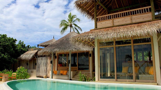 Le somptueux rencontre le durable dans ce paradis bordé de palmiers. Magnifiquement isolé, mais accessible par avion et par bateau depuis l'aéroport international de Malé, le Six Senses Laamu est situé dans un lagon d'un bleu époustouflant. Les villas, dotées de tout le confort nécessaire, sont installées sur pilotis au-dessus de l'eau ou en bord de mer. Toutes soigneusement conçues pour s'harmoniser avec la beauté naturelle exceptionnelle de l'île, elles offrent intimité et confort dans un décor paradisiaque. Fidèles à la philosophie de Six Senses, qui consiste à être en symbiose avec l'environnement, les villas sont fabriquées à partir de matériaux locaux et durables.