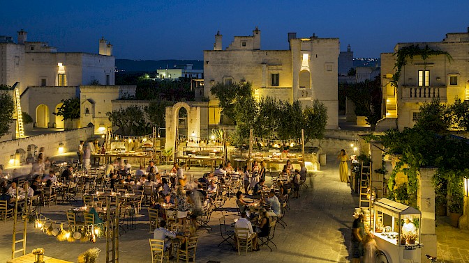 L’établissement recrée un véritable village avec le Borgo, ses ruelles en pierre et sa place principale. Dans les trattoria Mia Cucina et La Frasca, vous découvrirez les plats typiques de la région, dans une ambiance chaleureuse et familiale. Ici, vous pouvez faire votre choix parmis différentes maisons, qui proposent tous une atmosphère quelque peu rustique en hommage à la tradition des Pouilles.