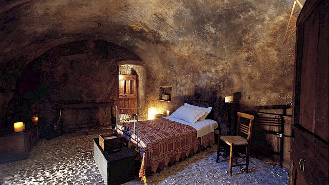 Au cœur de cette région verdoyante, l’Albergo Diffuso préserve les traces de l’héritage traditionnel médiéval du village. Les petites maisons de pierre et de bois, qui servaient autrefois de fermes ou de celliers, ont été rénovées et transformées, laissant place aux suites, à la réception, à une salle de mariage… De plus, toute trace de technologie moderne est cachée, l’architecture et les éléments de mobilier ou de décoration sont traditionnels et locaux. Dans cet esprit, l’atmosphère des chambres est épurée, alliant à la perfection authenticité et modernité. Les produits locaux et fait-mains présents dans les chambres sont disponible à la vente dans la Bottega artisanale de l’hôtel.